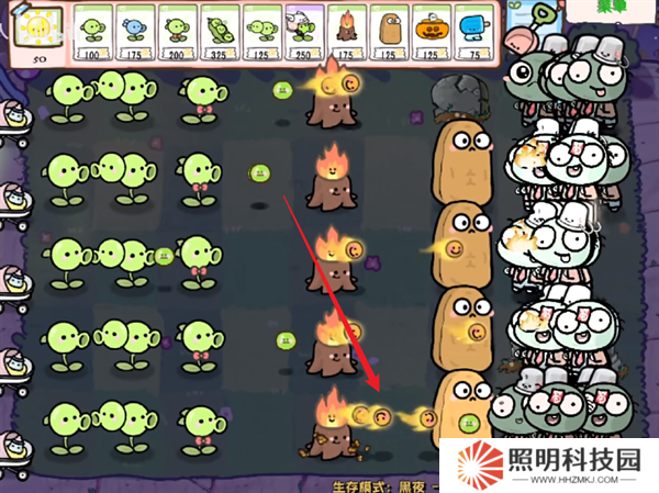 6、通過(guò)植物之間的組合,比如豌豆射手和火炬樹(shù)樁之間的配合來(lái) 發(fā)揮出更加強(qiáng)大的攻擊力。