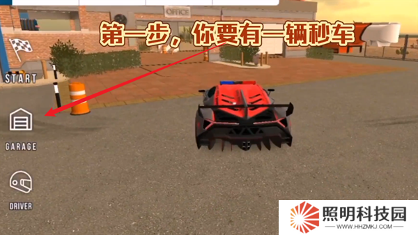 1、玩家們在擁有一輛秒車之后,在主界面之中點擊左側的車庫按鈕。