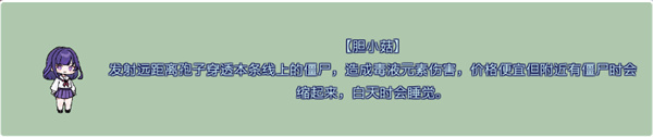 五、【膽小菇】發射遠距窩孢子穿透本條線上的僵尸,造成毒液元素傷害,價格便宜但附近有僵尸時會縮起來,自天時會睡覺。