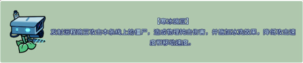 六、【寒冰豌豆】發射遠程豌豆攻擊本條線上的僵尸,造成物理鈍擊傷害