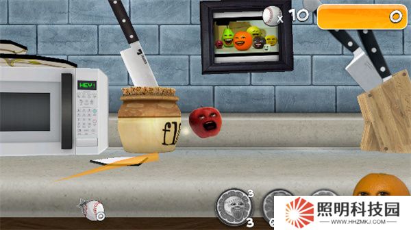 煩人的橘子是一款卡通擬人風格休閑益智趣味模擬冒險闖關類手機游戲,這款游戲中采用了極具特色的棒球打法游玩模式,玩家們將在關卡模式中使用棒球將場景內容的水果角色擊飛,使其飛得更遠還能夠掉落在砧板或者器具之