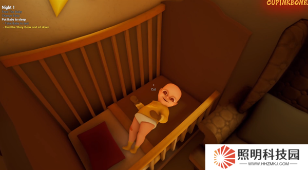 6、第三個(gè)任務(wù)就是將嬰兒哄睡,來(lái)到二樓的臥室當(dāng)中,將其放置到嬰兒床上。
