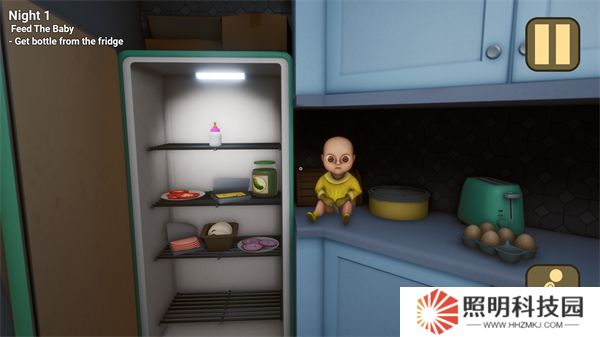 2、第一個(gè)任務(wù)就是對(duì)嬰兒進(jìn)行喂食,你要前往冰箱里面找到奶瓶。