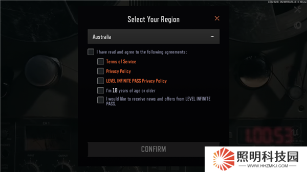 3、注冊成功后,玩家們需要選擇自己所在的國家,勾選所以協議,點擊確認;