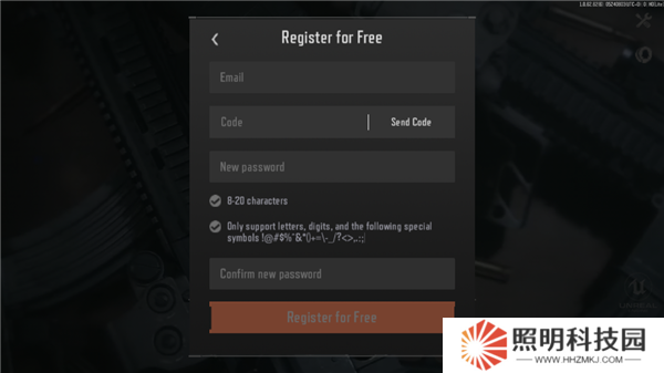 2、進入到注冊界面后,玩家們在輸入框中輸入你的電子郵箱,獲取驗證碼,登錄密碼點擊免費注冊;