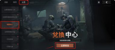 2、接著玩家們點擊上方公告選項,在找到兌換中心點擊立即前往。