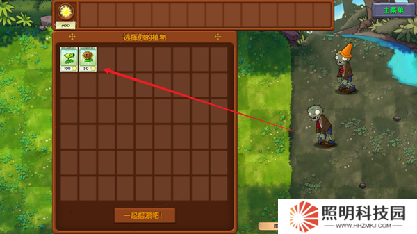3、通過點擊的方式來將自己的植物卡牌進行裝備,右側還能夠看到關卡之中需要面對的僵尸種類。