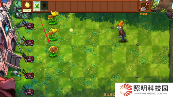 5、使用自己的植物與僵尸之間進行作戰,并由此面臨關卡最后的一**僵尸的挑戰。