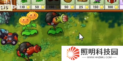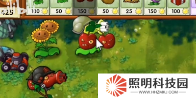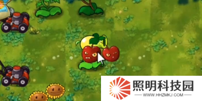 4、在另一株豌豆射手上種植櫻桃炸彈,讓其成為櫻桃射手。