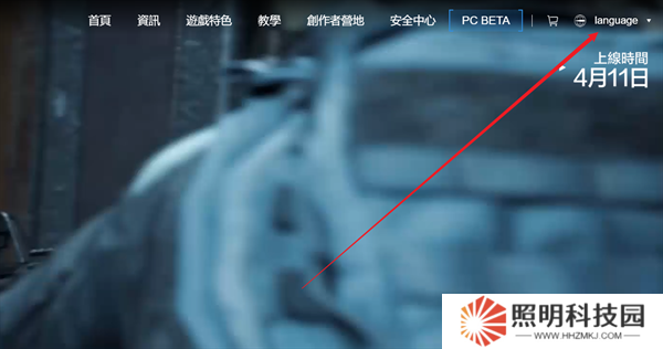 1、玩家們首先需要輸入(arenabreakout.com)進入到游戲的網站當中,點擊右上角的語言。