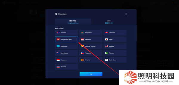 5、在彈出的界面當中將自己的地區更換為香港。