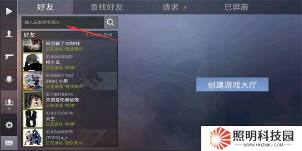 1、玩家們在好友界面輸入框中輸入玩家名稱和ID進行添加。