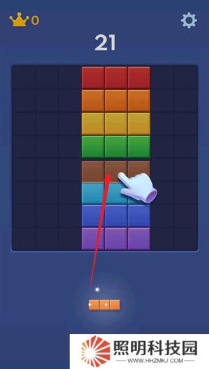 2、三列的方塊攢滿之后,就可以將其完全的進(jìn)行清除。
