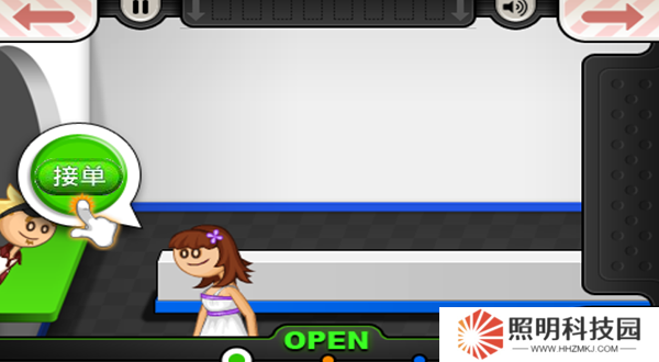 3、漢堡店?duì)I業(yè)之后,將會(huì)接待前來(lái)消費(fèi)的客人,點(diǎn)擊接單按鈕就能夠了解對(duì)方的需求。