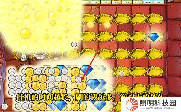 8、如果覺得刷金幣的速度不夠快,還可以同時使用寶藏吞噬者來進行刷金幣的操作,寶藏吞噬者會周期性的產出各種材料,比如陽光、金幣以及鉆石等等。