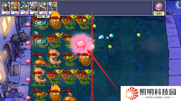 2、通過消耗指定數量的腦子,你就能夠在關卡的紅線右側召喚僵尸來與植物之間進行作戰。