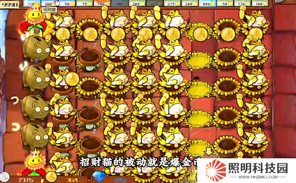 6、此時在自己的花盆上進行招財貓的種植,這種植物的被動就是爆金幣,每隔一段時間都回變出九個金幣。