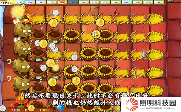 5、在完成這一關內部的三波僵尸進攻之后,暫時不要退出游戲,接下來不會由任何的僵尸出來,就能夠開始進行刷金幣的操作。
