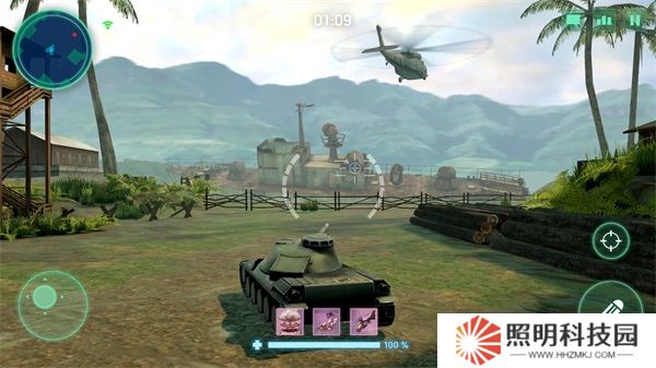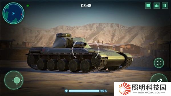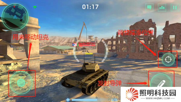 3、進入到場景內(nèi)后玩家們滑動左下角控制坦克移動,點擊右下角進行瞄準攻擊。