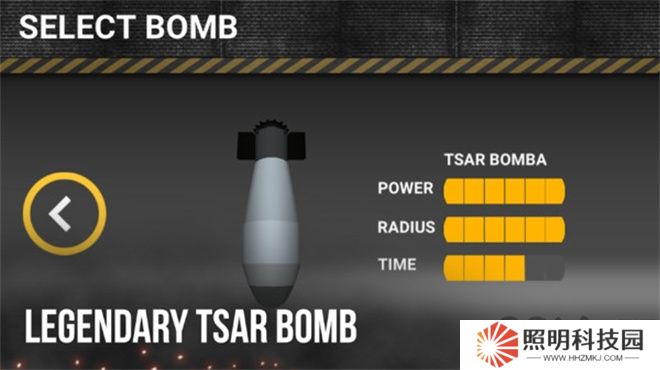 1、在本站下載并安裝游戲后,就能夠打開游戲選擇各種不同的核彈,每種核彈的威力和時長都不一樣。