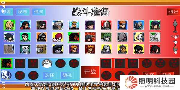 4、選擇模式完成后進入到戰斗準備階段,在這里選擇忍者、秘卷以及通靈,完成后點擊開始。