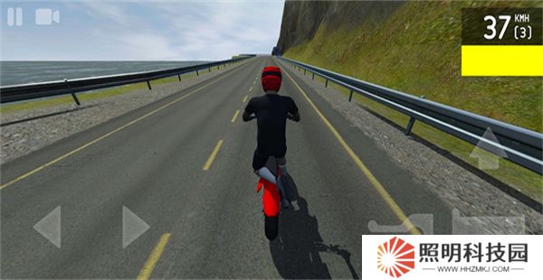 2、進(jìn)入到場景內(nèi)后,玩家們點擊左下角按鍵控制方向,點擊右下角的按鍵進(jìn)行跳躍、剎車、油門等操作。