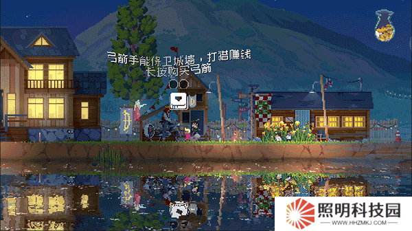 4.在修復(fù)房子旁邊的箭塔來招募弓箭手,這個游戲的機制是你需要通過金幣來購買弓箭,如果旁邊有無業(yè)游民就可以轉(zhuǎn)換職業(yè),當然人可以在其他的營地中薅羊毛。弓箭手不僅可以為你打怪,還可以來打獵賺金幣。