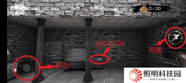 2、進入游戲之后,左邊輪盤可以控制人物移動,點擊游戲場景內的箱子之類,以此尋找錢袋及線索。