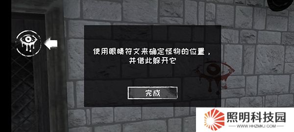4、玩家點擊墻上的紅色獨眼,即可收集到眼睛符文道具,使用后可以確定怪物的大概位置。