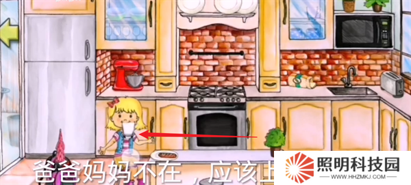 5、換裝完成之后,來(lái)到廚房吃早餐,將牛奶拖動(dòng)到角色嘴邊,就能夠完成喝牛奶的操作。