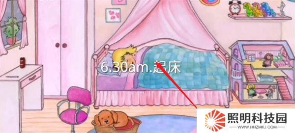 2、然后拖動(dòng)自己的角色,讓她從床上下來(lái)。