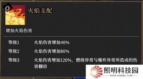 整個游戲最超模的增傷天賦,沒有之一。三級120%增傷,燃燒和爆炸倍率翻倍,而且是aoe傷害,只要拿到就是一路秒。
