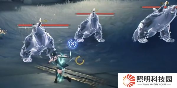 4、進入環(huán)木闕的深處,來到第一個防御節(jié)點前,開啟挑戰(zhàn),擊敗來襲的聲骸怪物,在挑戰(zhàn)中可以使用移星鑰停滯時間,這樣我們打怪會更加輕松;擊敗聲骸怪物后就可以成功開啟第一個防御節(jié)點。