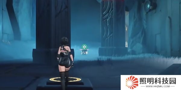 5、跟隨指引找到第一個防御節(jié)點,我們使用移星鑰進行解謎挑戰(zhàn),只需要將上下兩根移動的柱子移動到光線下開啟時間停滯就可以完成挑戰(zhàn)開啟第二個防御節(jié)點了。