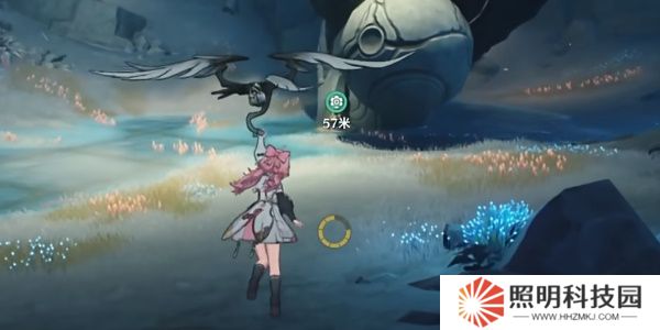 7、第三個防御節(jié)點被防御屏障包圍,玩家只需要使用遠程輸出角色擊碎墻上的花就可以解除屏障;然后擊敗聲骸怪物開啟第三個防御節(jié)點。