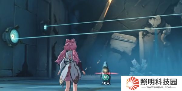 8、第四個防御節(jié)點是需要玩家使用移星鑰在準確的時間內將上下移動的柱子暫停使它們射出的光線可以對準另一側墻壁上的光圈就可以了。