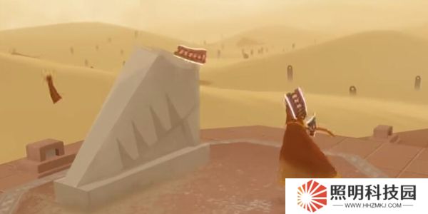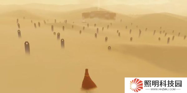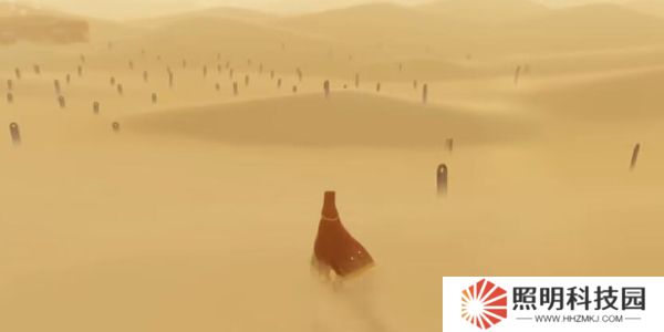 2.在一望無(wú)際的沙漠,玩家扮演一位旅人,向前行走,周圍都是矗立的石碑。