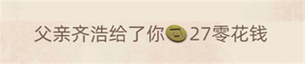 幼年時期通過和父母要零花錢,得到少數的金錢,父母雙方一年各一次。隨著后期父母也會升職,職位越高工資越高,向父母要零花錢時也會越多。