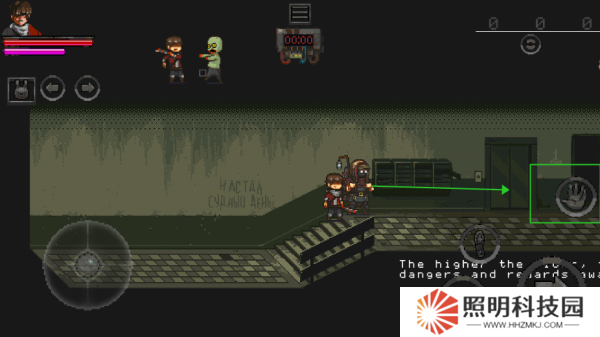 4、左邊的操控盤控制角色移動(dòng),點(diǎn)擊刀劍可以對(duì)喪尸進(jìn)行攻擊。