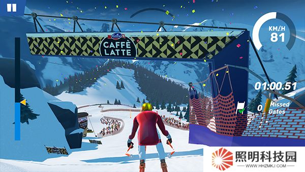 3、你要在雪地上盡情的玩耍,通過各種道具加速的沖向終點(diǎn)們不能被別人搶先了。