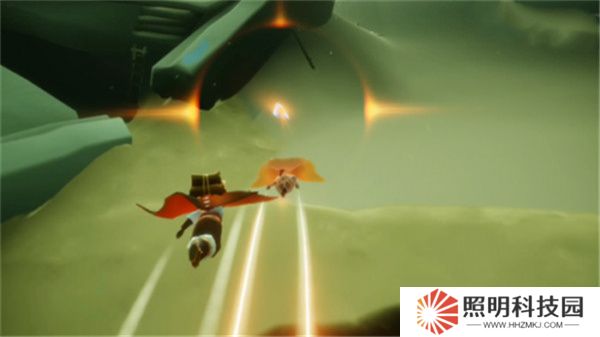1、首先玩家們控制角色來到雨林密林遺跡,在水母圖往右側飛。