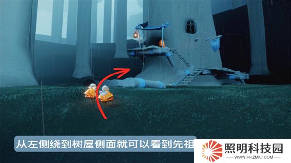 3、然后走到樹屋左側即可找到先祖,我們在正面是看不到的。