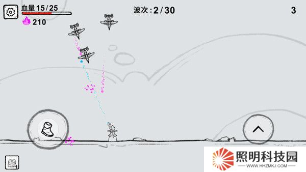 4、一切就緒后,點擊【開始游戲】,游戲采用橫屏操作,玩家在游戲中需操縱魔法師攻擊天上飛著的戰斗機。
