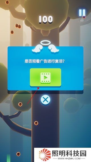 4、當小球觸碰到障礙物后即為失敗,點擊即可觀看廣告進行復活。