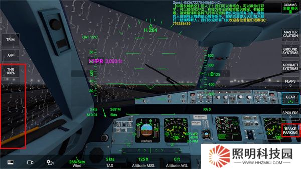 4、調(diào)整好襟翼后,我們就可以松開剎車BRAKE,然后滑動左側(cè)的油門THR,將油門推到100%。