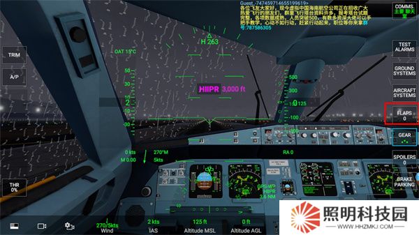 3、校正角度后,默認(rèn)進(jìn)入飛機(jī)機(jī)尾的視角,首先需要調(diào)整襟翼,按住右側(cè)的FLAPS,選擇第一級。