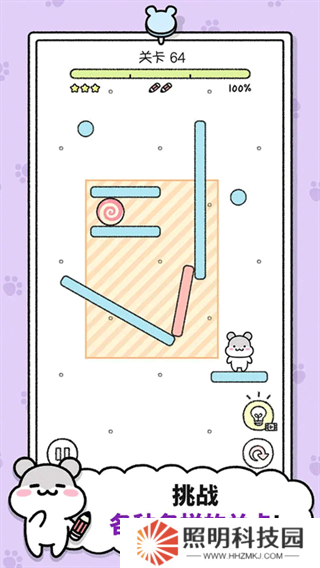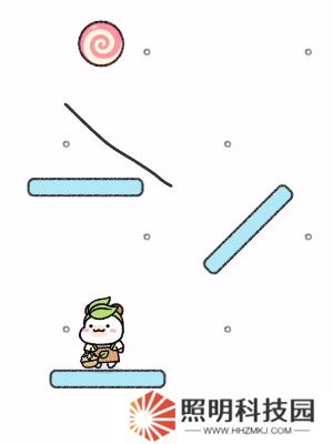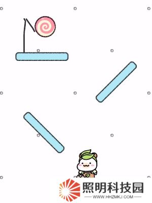 3.手指劃兩下,畫出黑線調整糖果的走勢,幫助小倉鼠獲取糖果,獲取更多的星星,需要玩家謹慎思考。