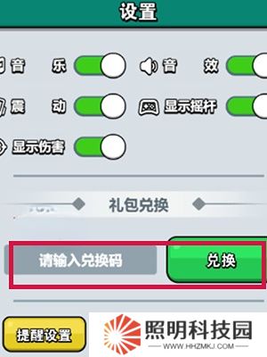 2.隨后在【設置】界面找到【禮包兌換】。在圖中所示的中輸入正確的【禮包碼】,點擊【兌換】即可獲取獎勵。