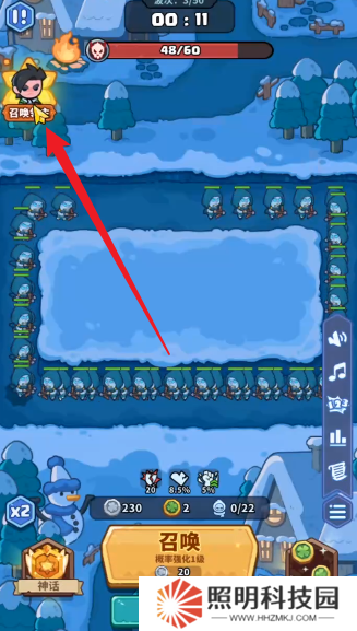 3、你可以點擊左上角的召喚領(lǐng)主,來讓其與怪物之間進行作戰(zhàn)。