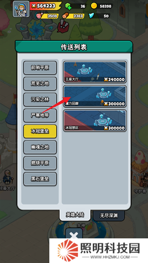 2、接著玩家們在傳送列表中選擇戰力較低的區域,點擊即可傳送。